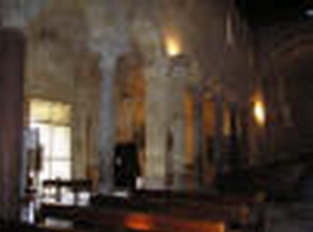 L’interno è diviso da ventidue colonne e tre coppie di pilastri cruciformi.