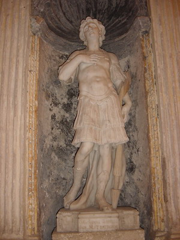 La statua di San Gavino ricorda il ritrovamento delle reliquie dei Santi Martiri (Gavino, Proto e Gianuario,