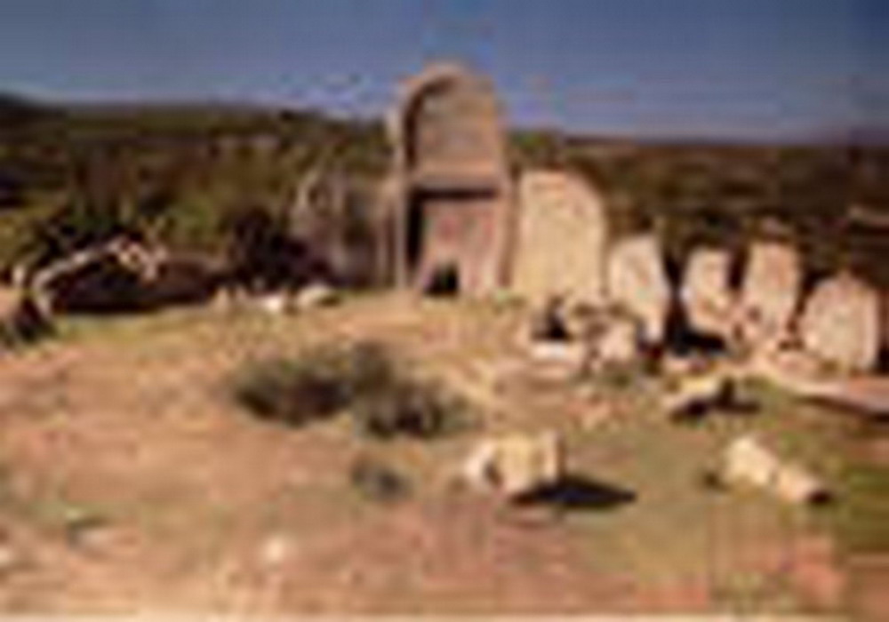 l'esedra tende a scomparire del tutto riducendosi ad una fronte rettilinea. Il portello si apre alla base della "stele" monolitica ben levigata e lavorata.